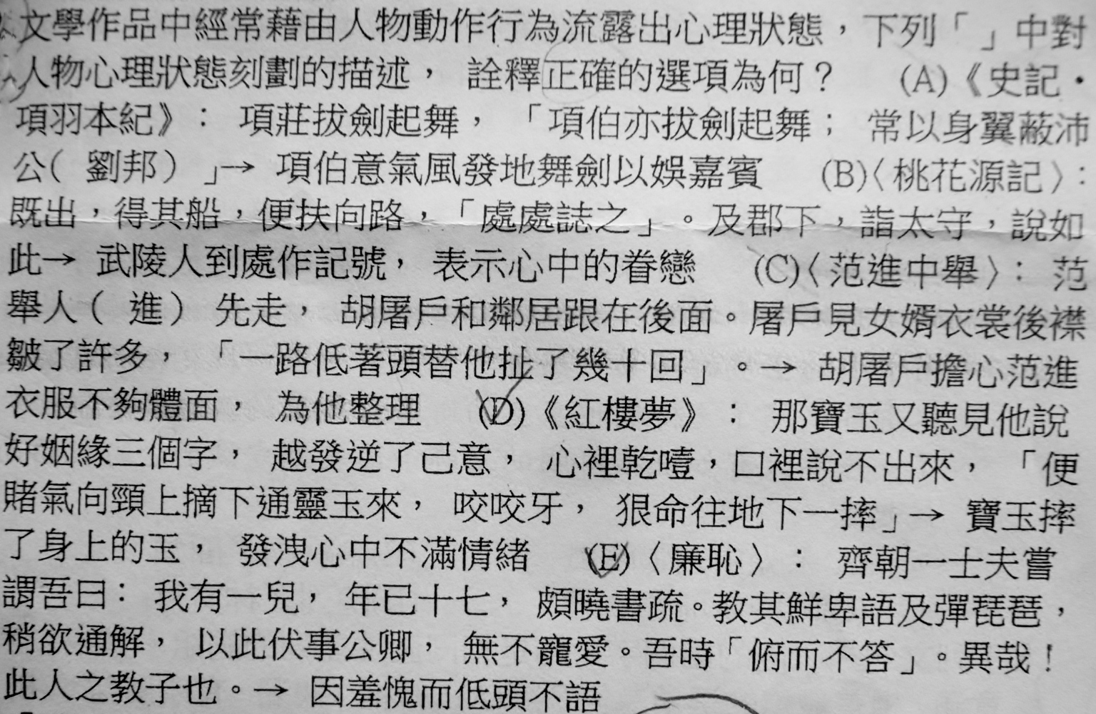 人物心理狀態刻劃的描述