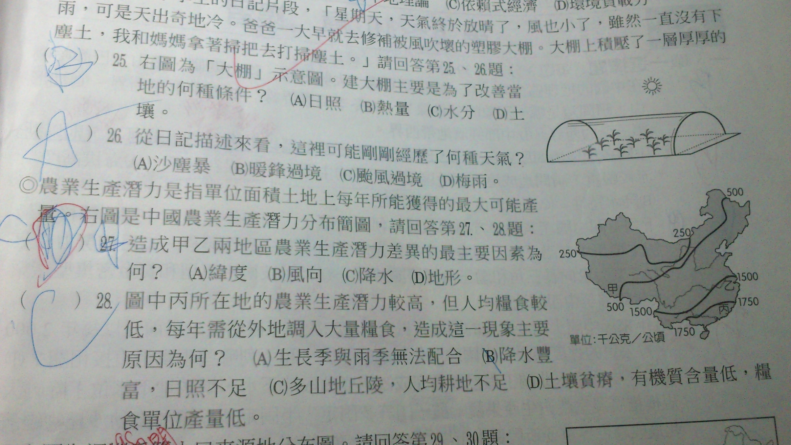 27題:老師說題目中常常有很多答案都可以但是要看題幹分析然後選擇,27題不是給等雨量線嗎?為何最後是地形?我原本也覺得是地形的說~請老師說明謝謝