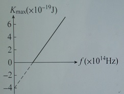 如圖為「光電效應」實驗中,電子最大動能Kmax與入射光頻率f的函數關係圖,則下列敘述何者正確?