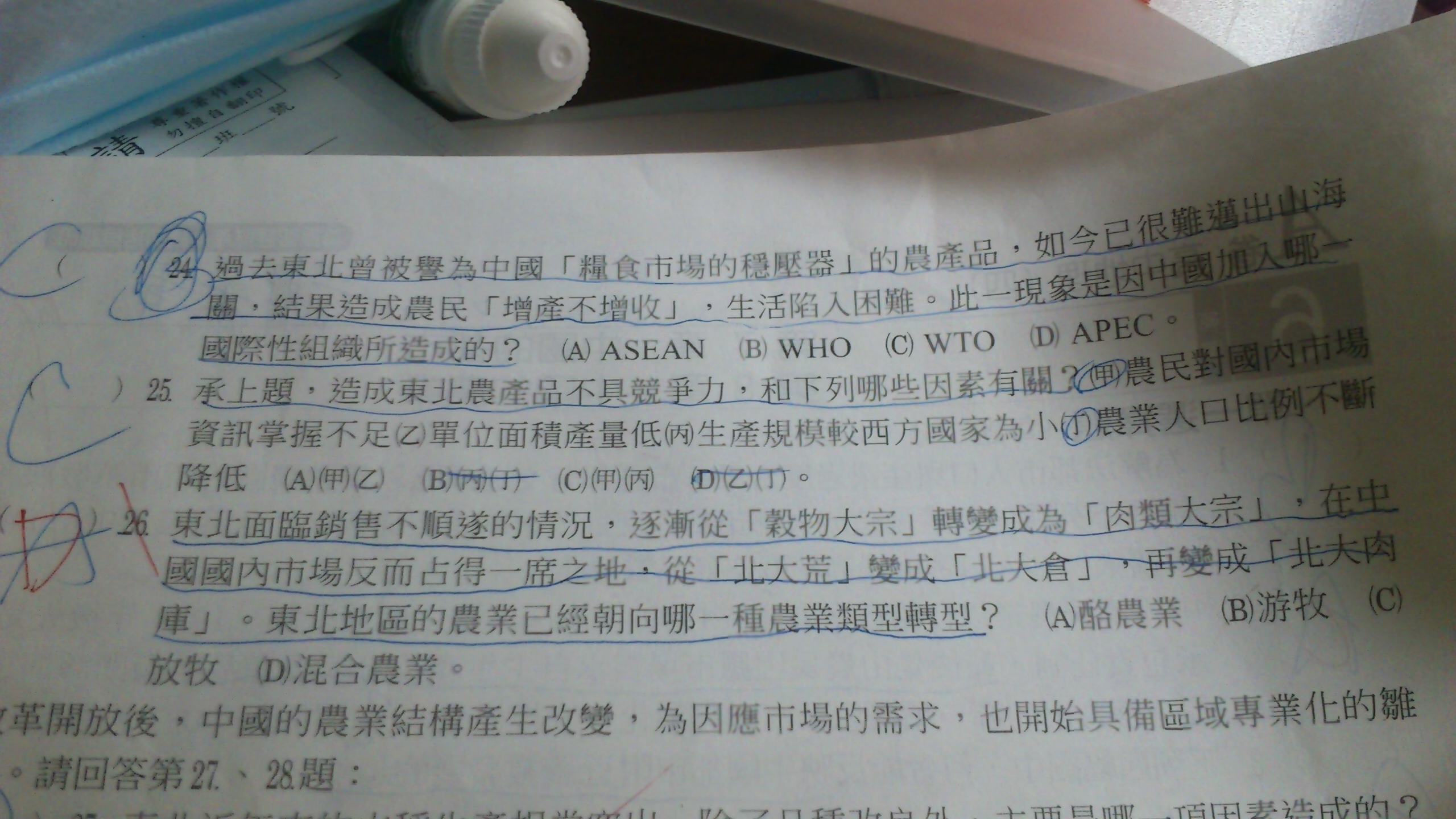 26.老師之前在課本上東北補充酪農業,為何26題是混和農業?