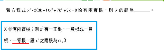 「一個零根、一個負根」這樣算起來不是只有3個根 (0和2個虛根) 嗎?與題目的2個實根不合啊!