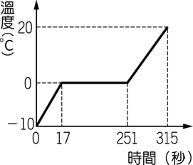 題目:質量 400 公克的銅製量筒,內裝質量 300 公克的-10 ℃冰塊,以一供應速率每秒 100 卡之熱源加熱,設無熱量散失,由實驗數據所做的溫度與時間關係,如圖所示。水的比熱為 1 卡/公克-℃,冰的比熱為 0.5 卡/公克-℃。