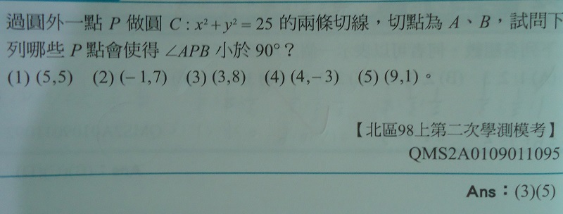 我知道他是說過P(圓外一點)做兩條切線