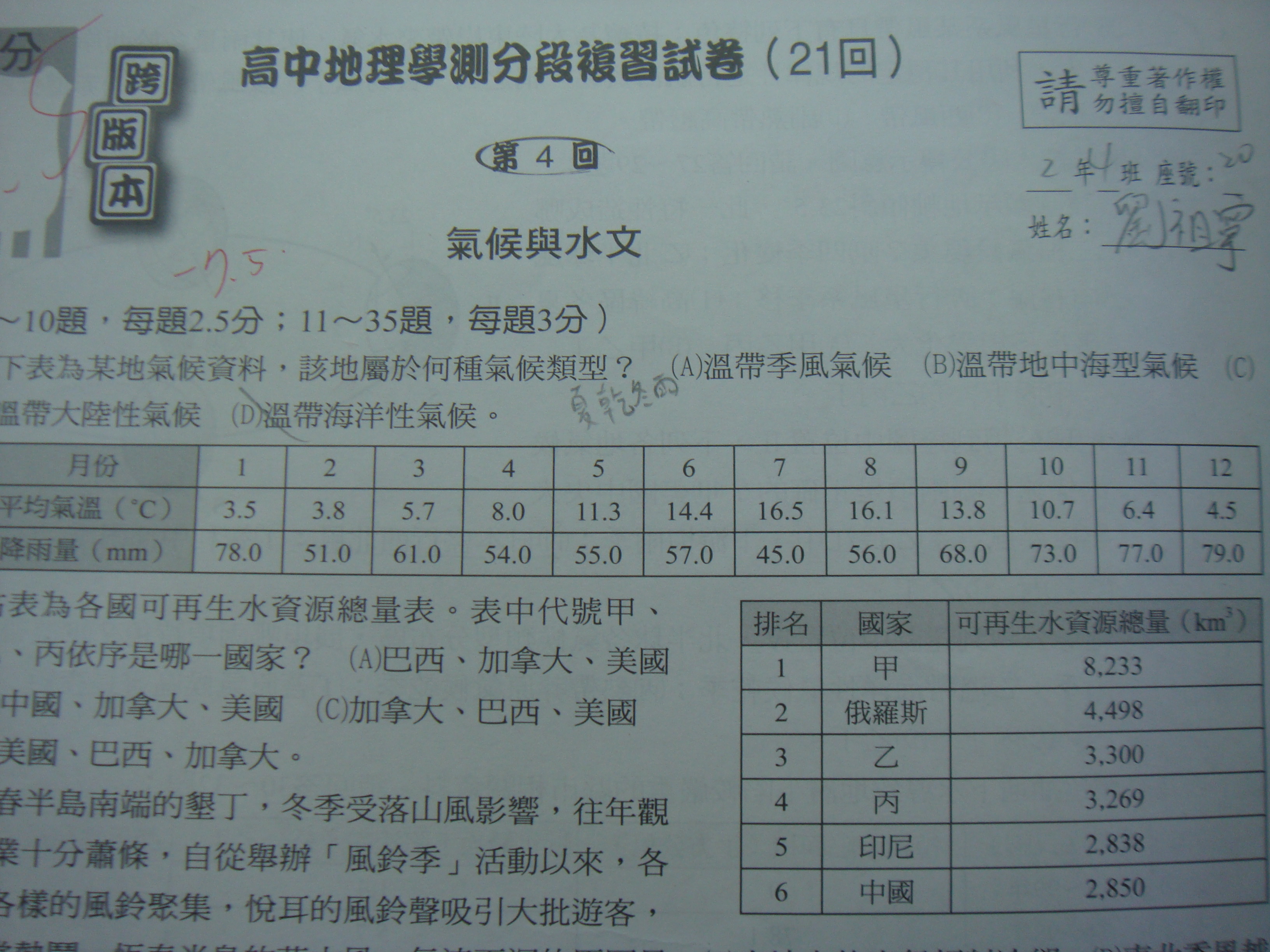 氣候類型那題