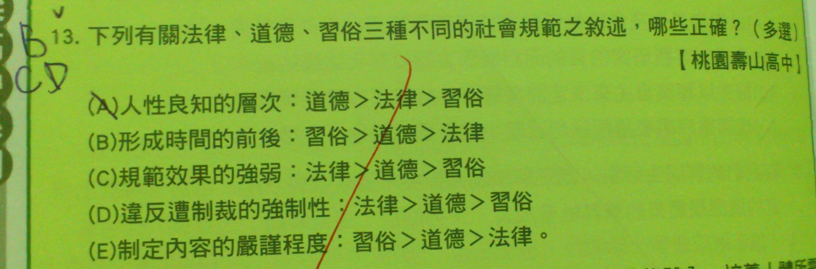 題目裡道德跟習俗所放的位置都跟我的想法相反