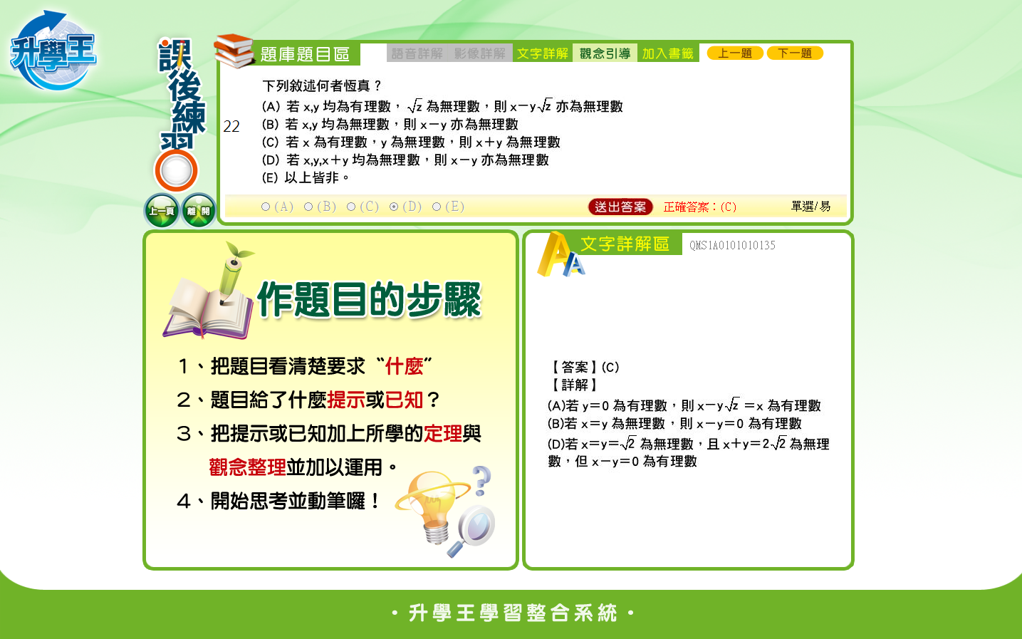 請問c選項的y如果是根號4,x是-2,那x+y不就等於有理數了?所以c也不對吧?