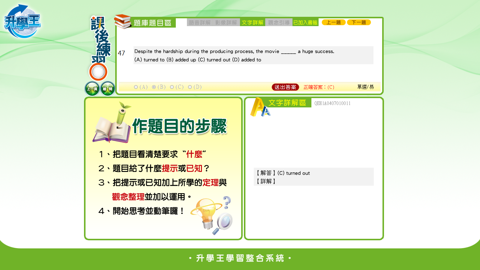 turn out 不用再加 to be嗎? 其他選項又是什麼意思?