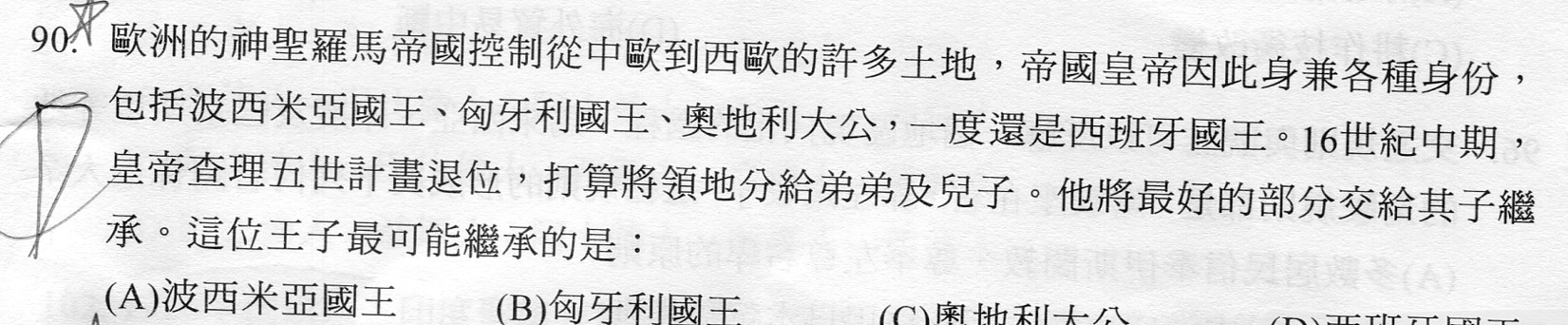 我想問C,D選項(C是奧大利大公,D是西班牙國王)