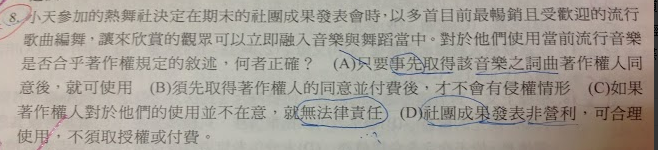 (D) 可以因為非營利就可合理使用