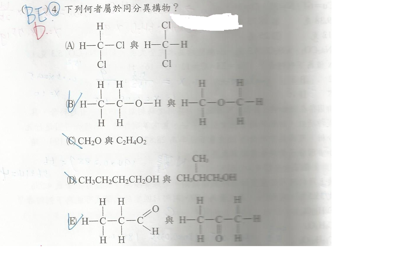 我知道同分異構物,分子式相同,結構式不同