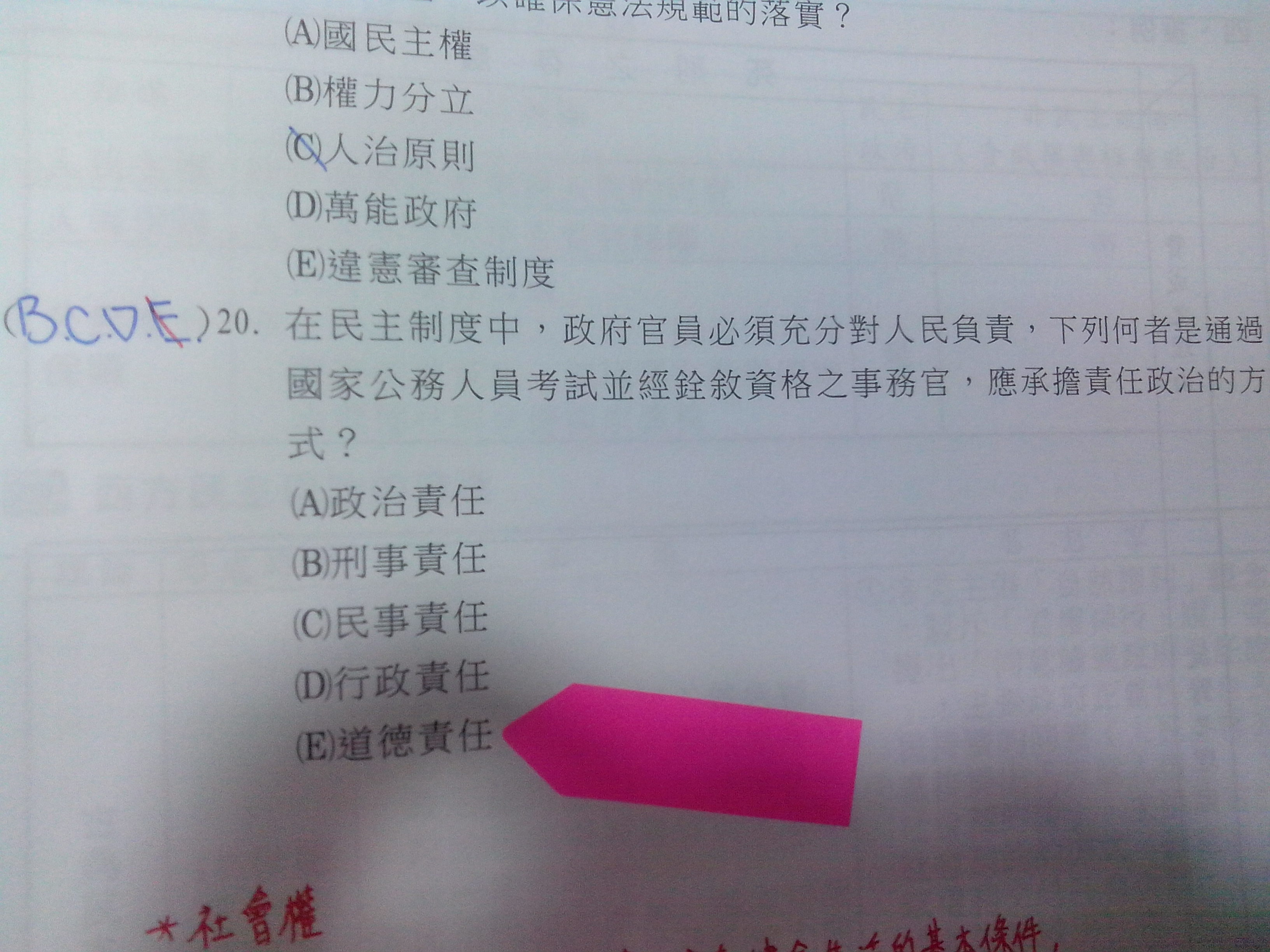 第20題。為什麼不用承擔政治和道德責任?政治責任是只有民選的官員才需要承擔嗎?