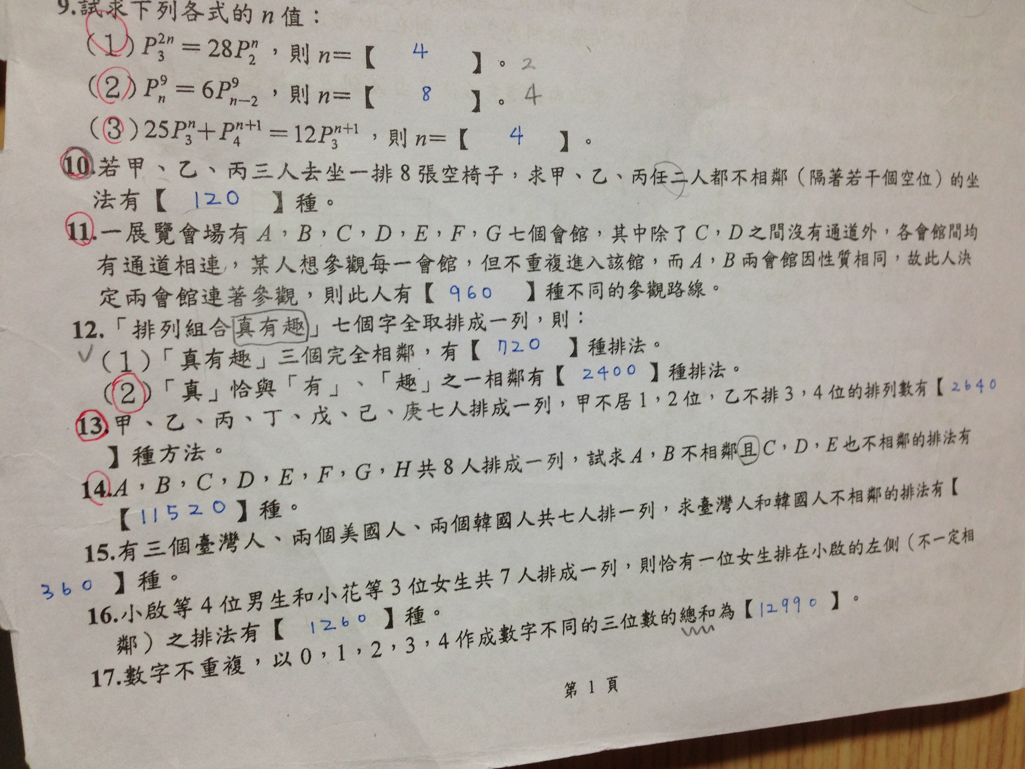 高中 /數學 排列、組合