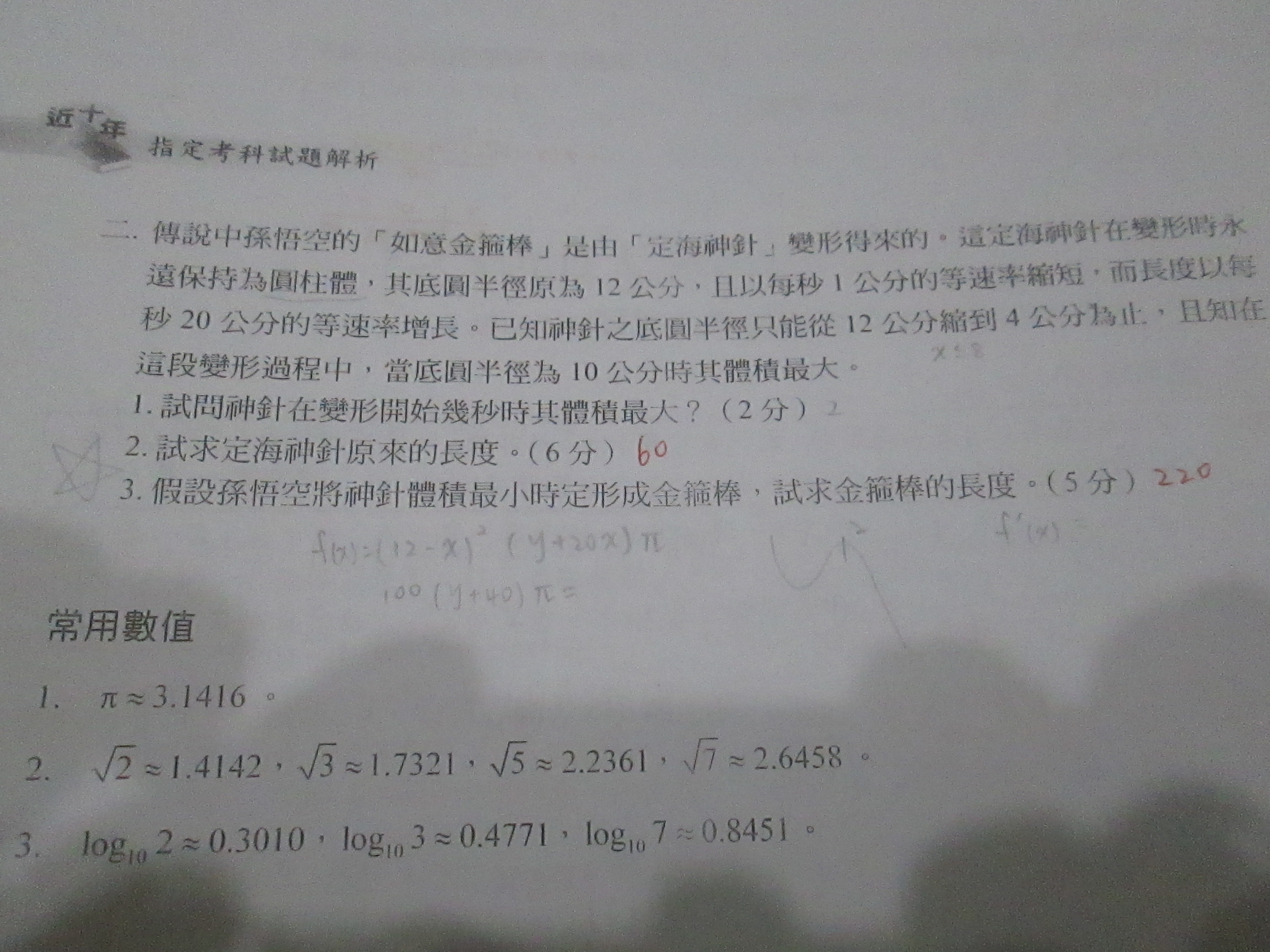 問第2小題和第3小題