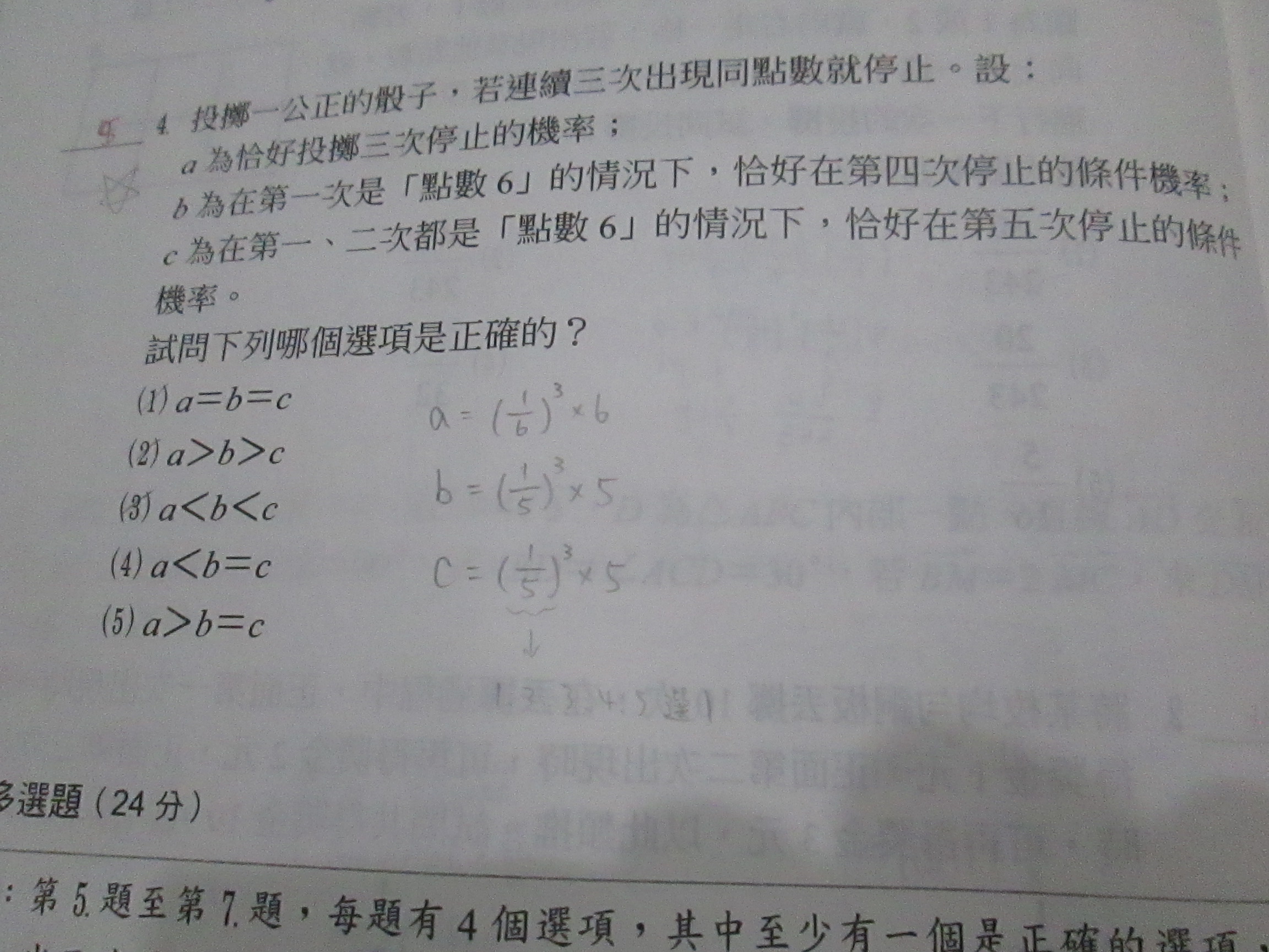 我的bc哪裡寫錯?5分之1是1.2.3.4.5裡選一