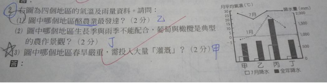 如丁為地中海型氣候等。