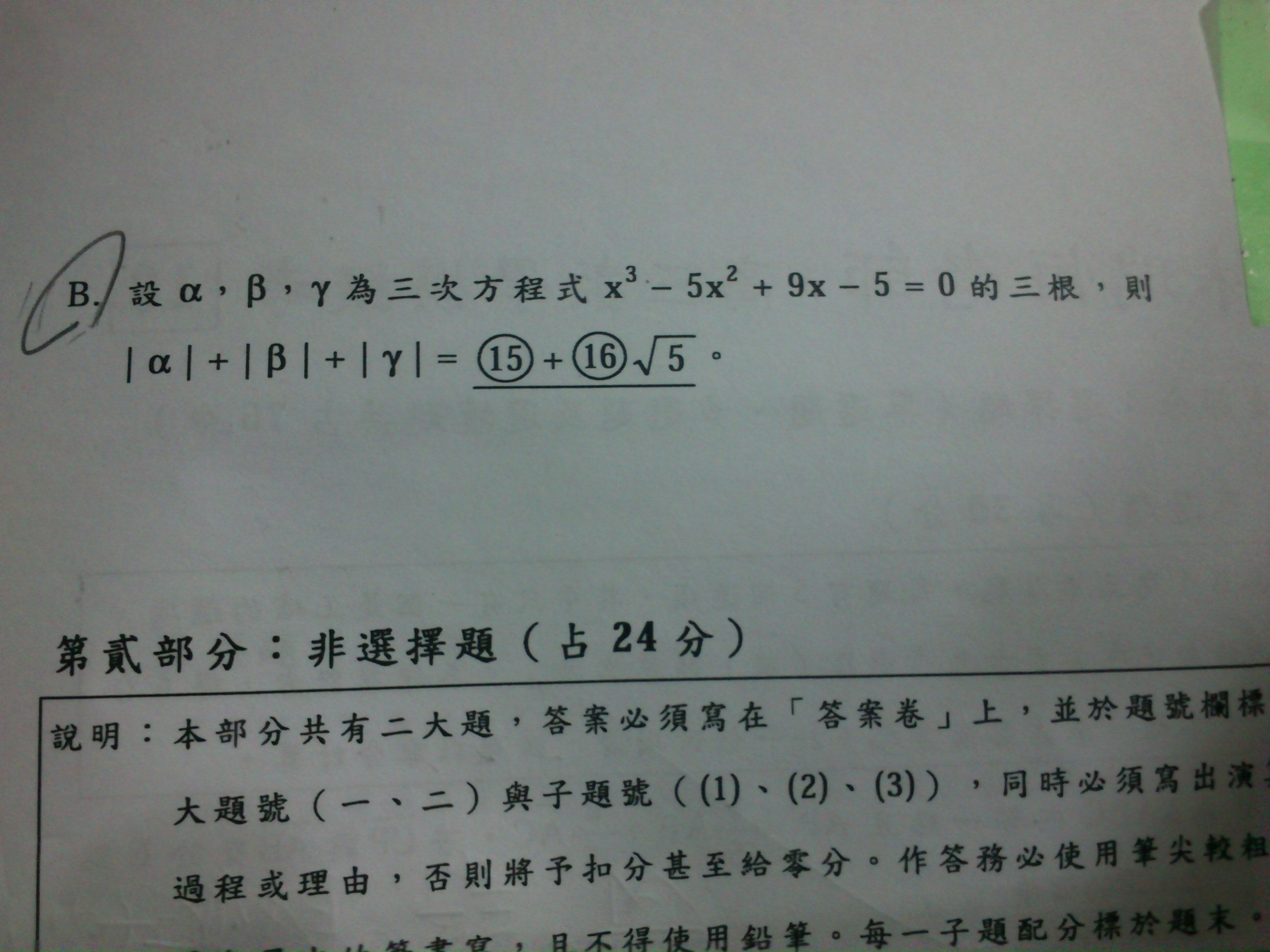 每次發問解題以一題為限,請標示解題題號,若無標示則以畫面第一題為準,若有多題題目發問,請另行發問。