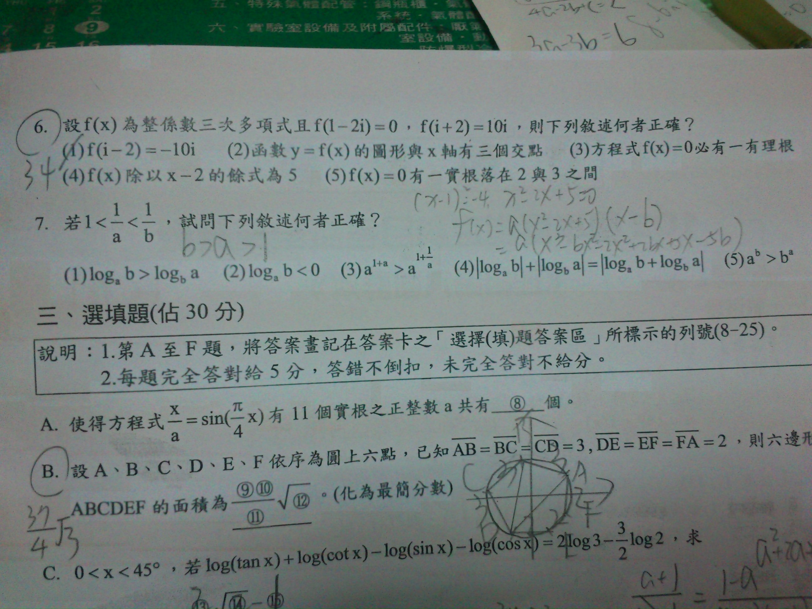 每次發問解題以一題為限,請標示解題題號,若無標示則以畫面第一題為準,若有多題題目發問,請另行發問。