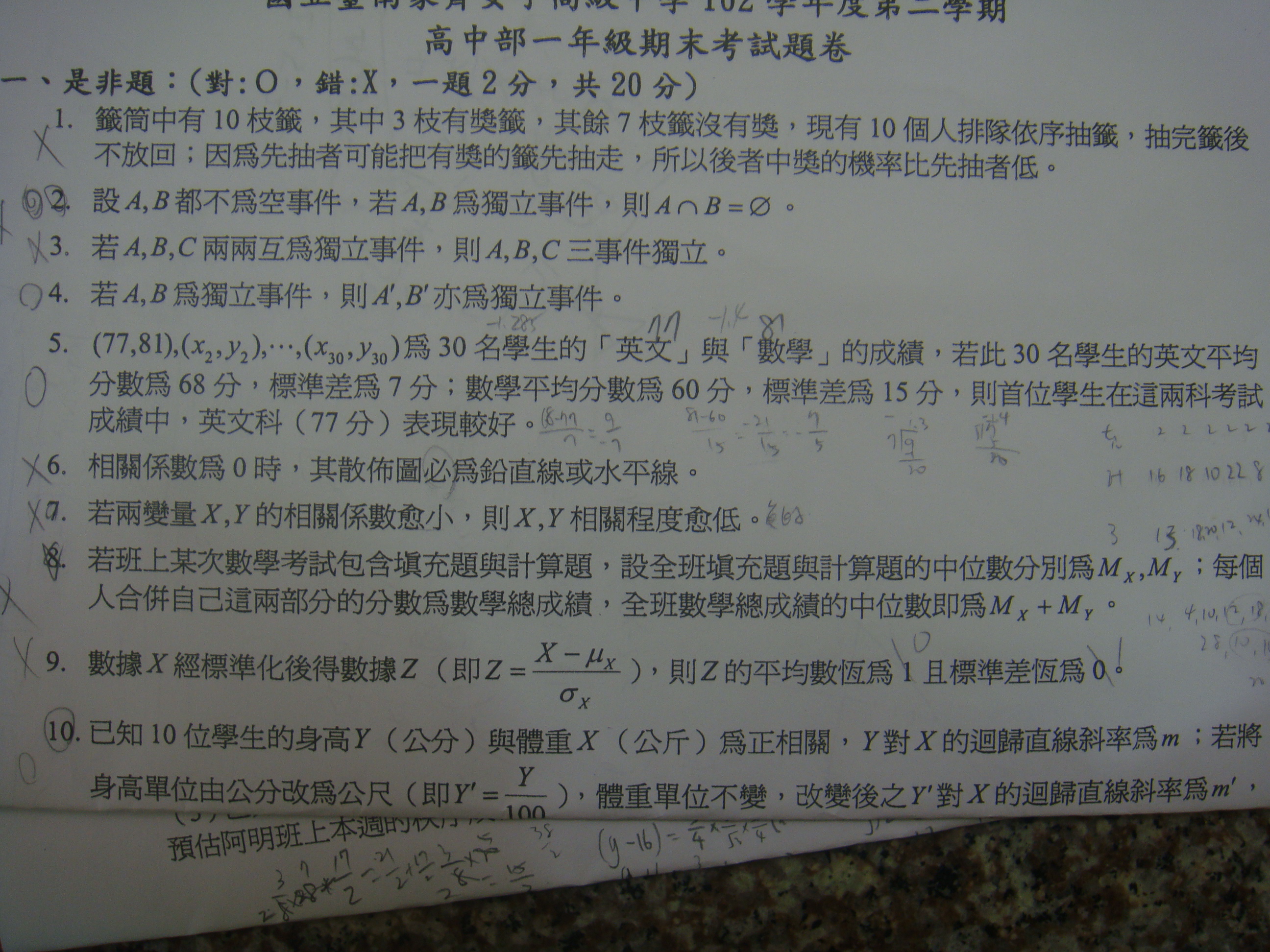 第5題是X?