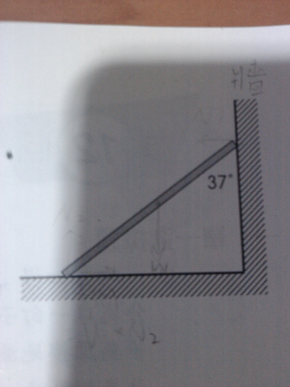 如上圖,梯子質量m,斜靠在光滑牆上,恰能維持平衡,求地面