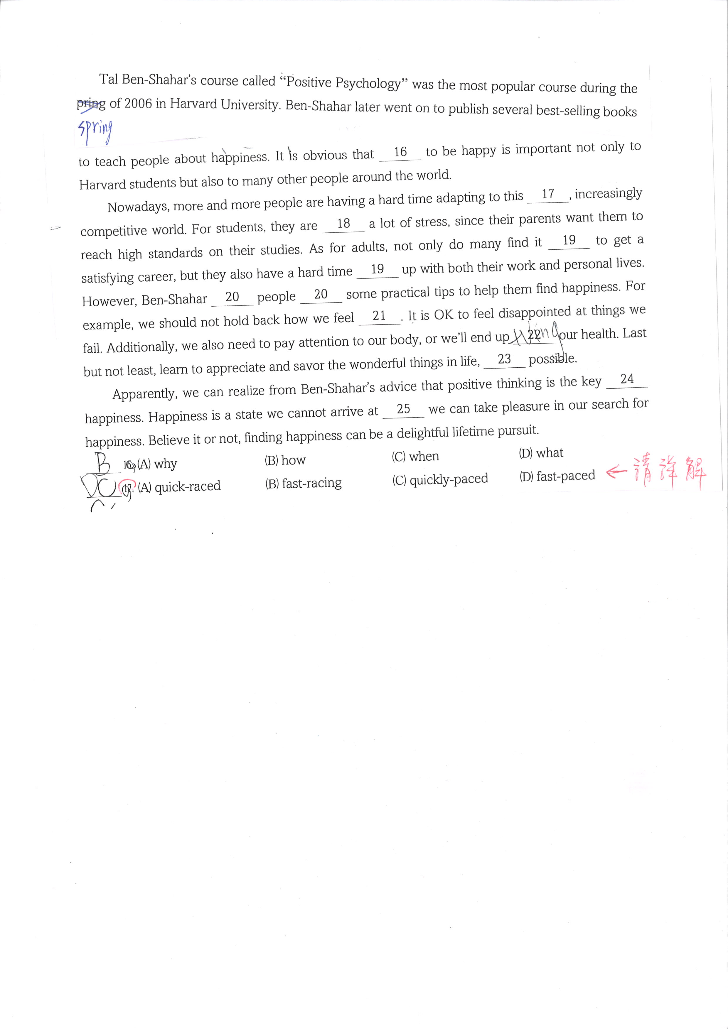 請老師將正確解答做詳細解析,以便了解其觀念謝謝