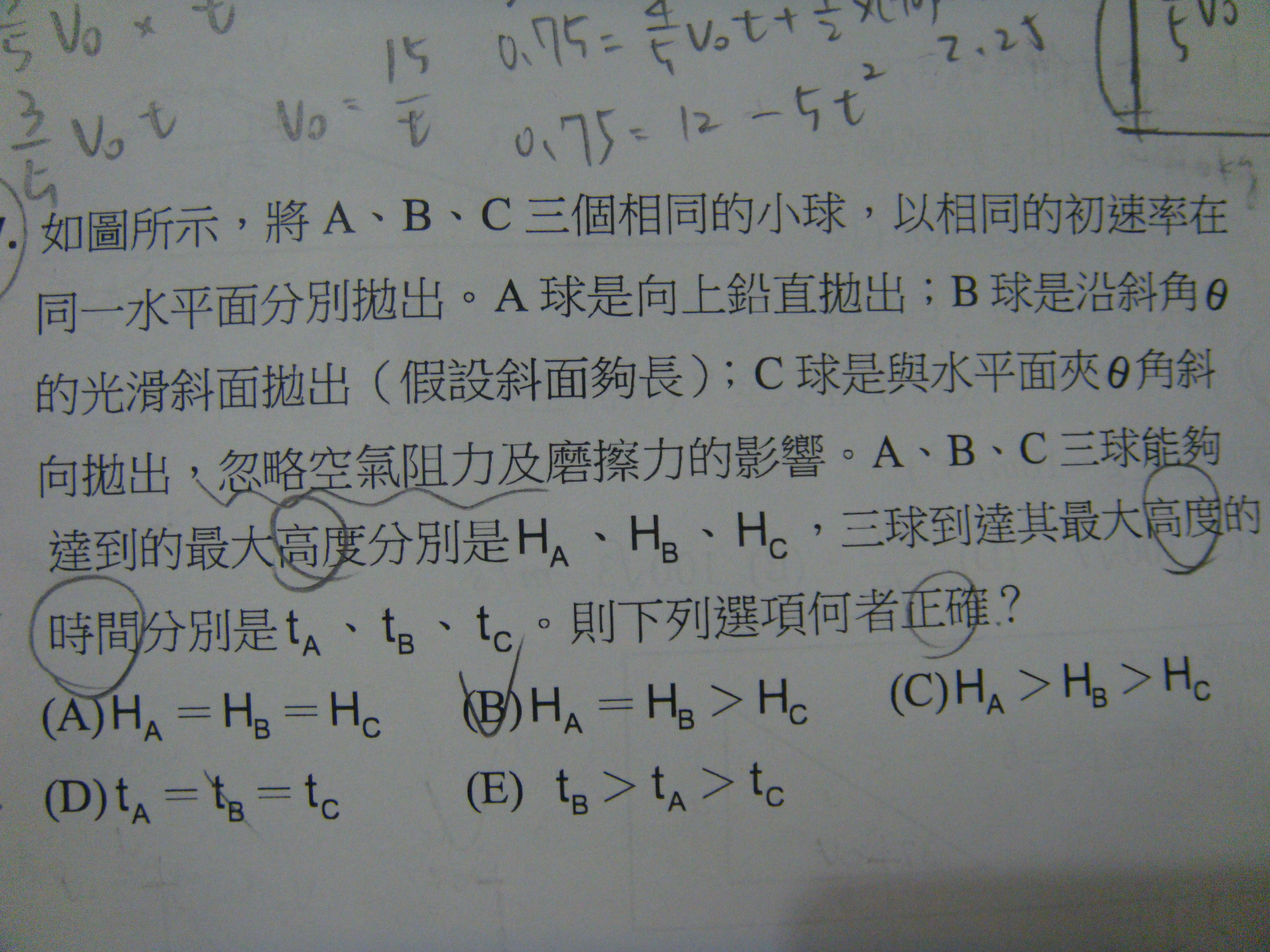 請幫我畫出A B C三球的V-T圖