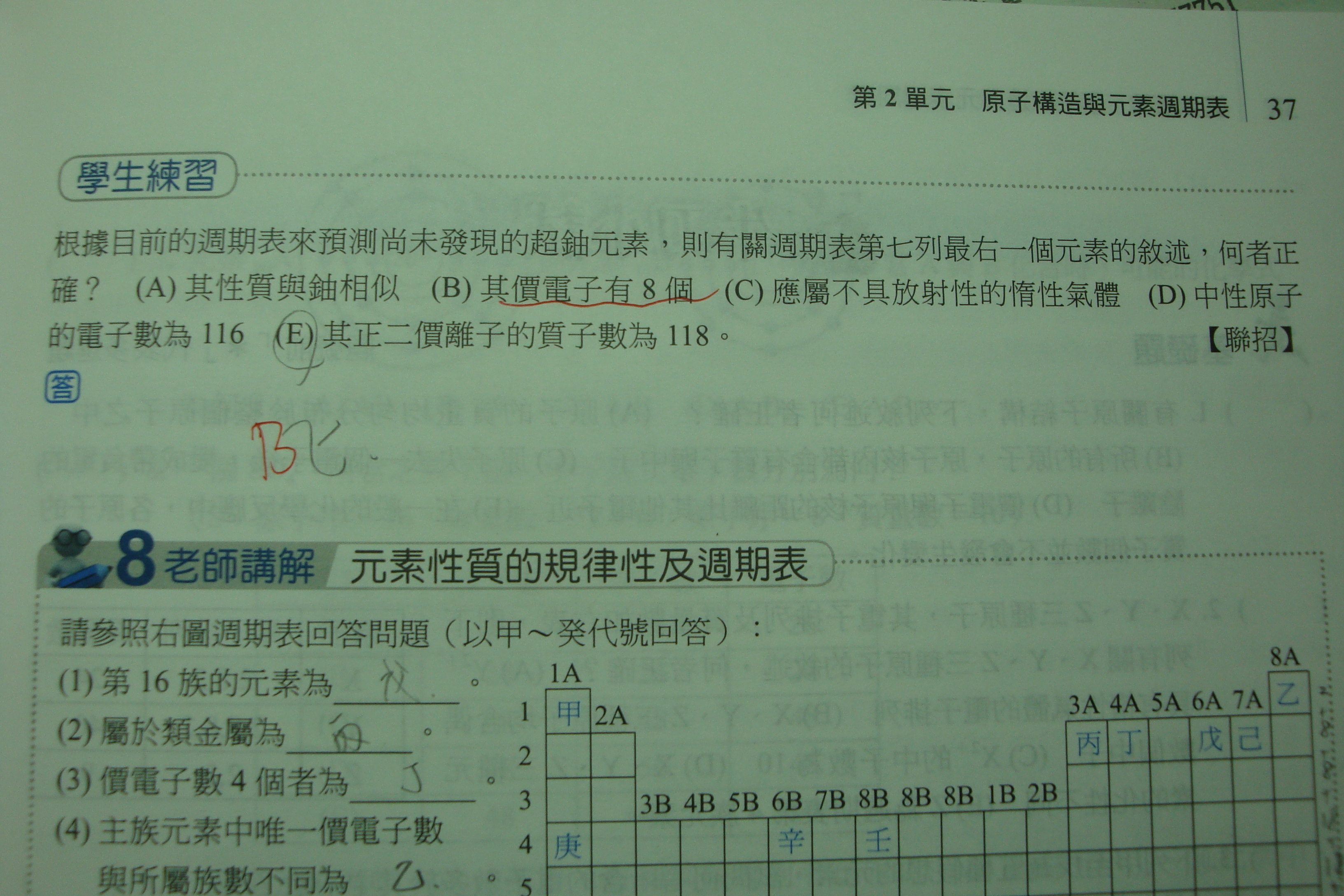 請問一下 價電子不是原子的最外層電子數嗎? 那這題B應該是32個吧? 為什麼是8個? 還有電子主殼層K L M N......可容納的電子數分別為2 8 18 32...... 那為什麼週期表由上而下是2 2+8 2+8+8 2+8+8+18 2+8+8+18+18 2+8+8+18+18+32......?? 可以請您詳細說明 舉一個例子並畫出他的電子排列嗎? 感謝萬分~~