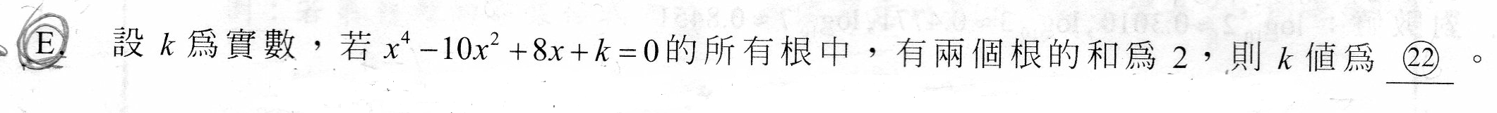 請詳解以下題目,並說明為什麼f(x)=0的四根和會等於0?