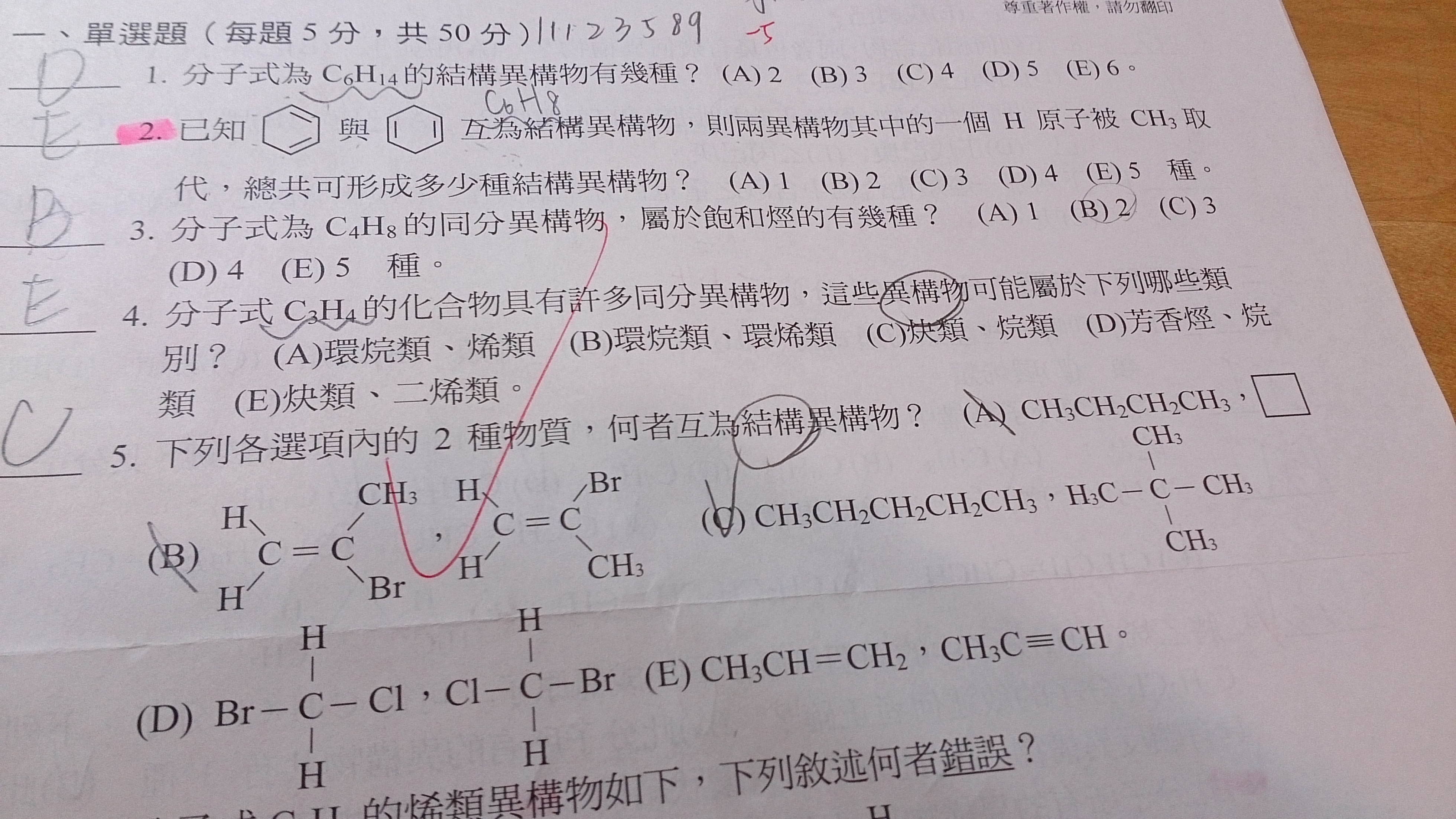 所以可能為 三環/二環一雙鍵/一環二雙/三雙/二雙1參鍵 五種可能性?