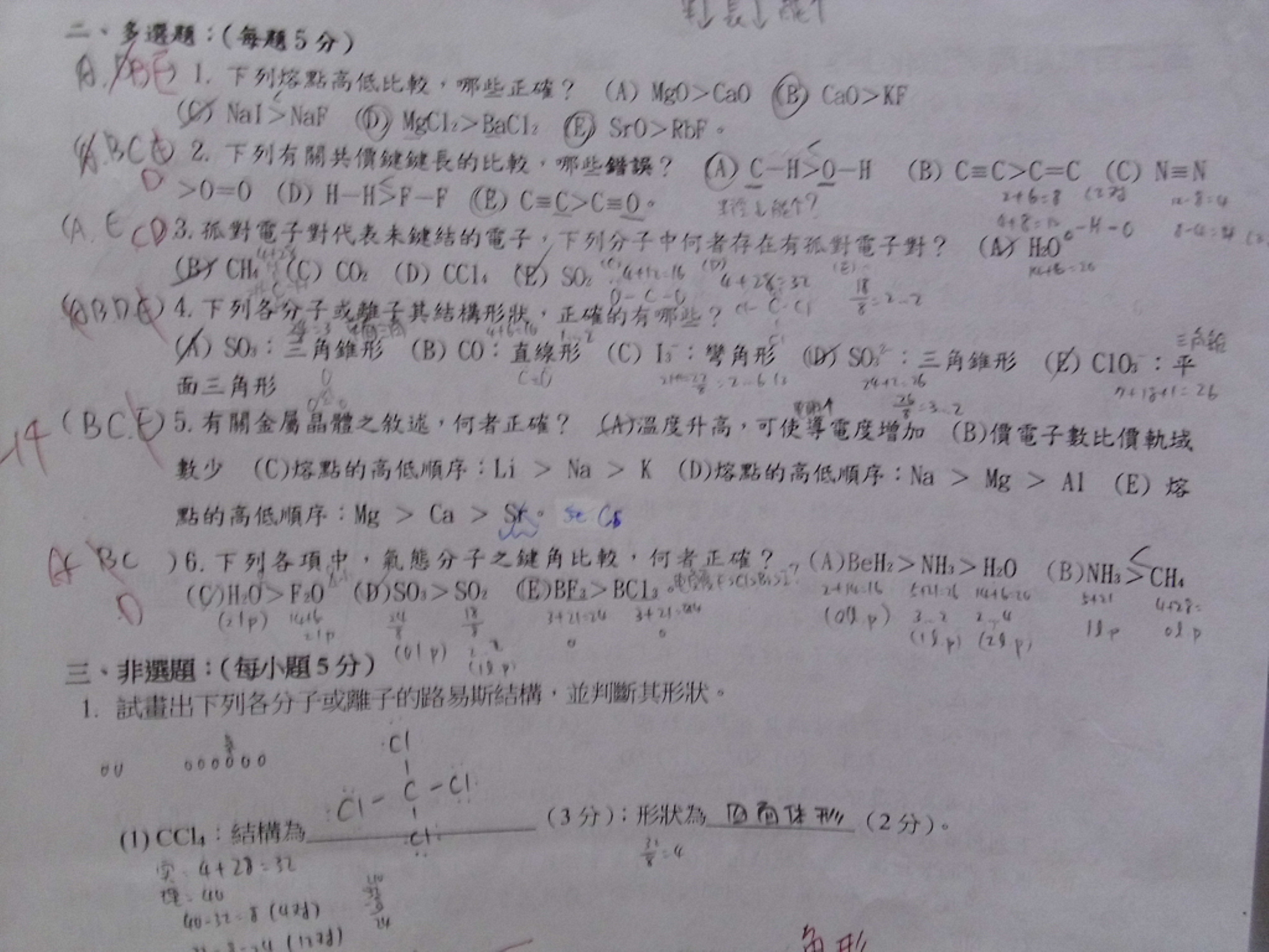 多選2.(A).(E)不是半徑越小鍵長越小鍵能越大嗎?
