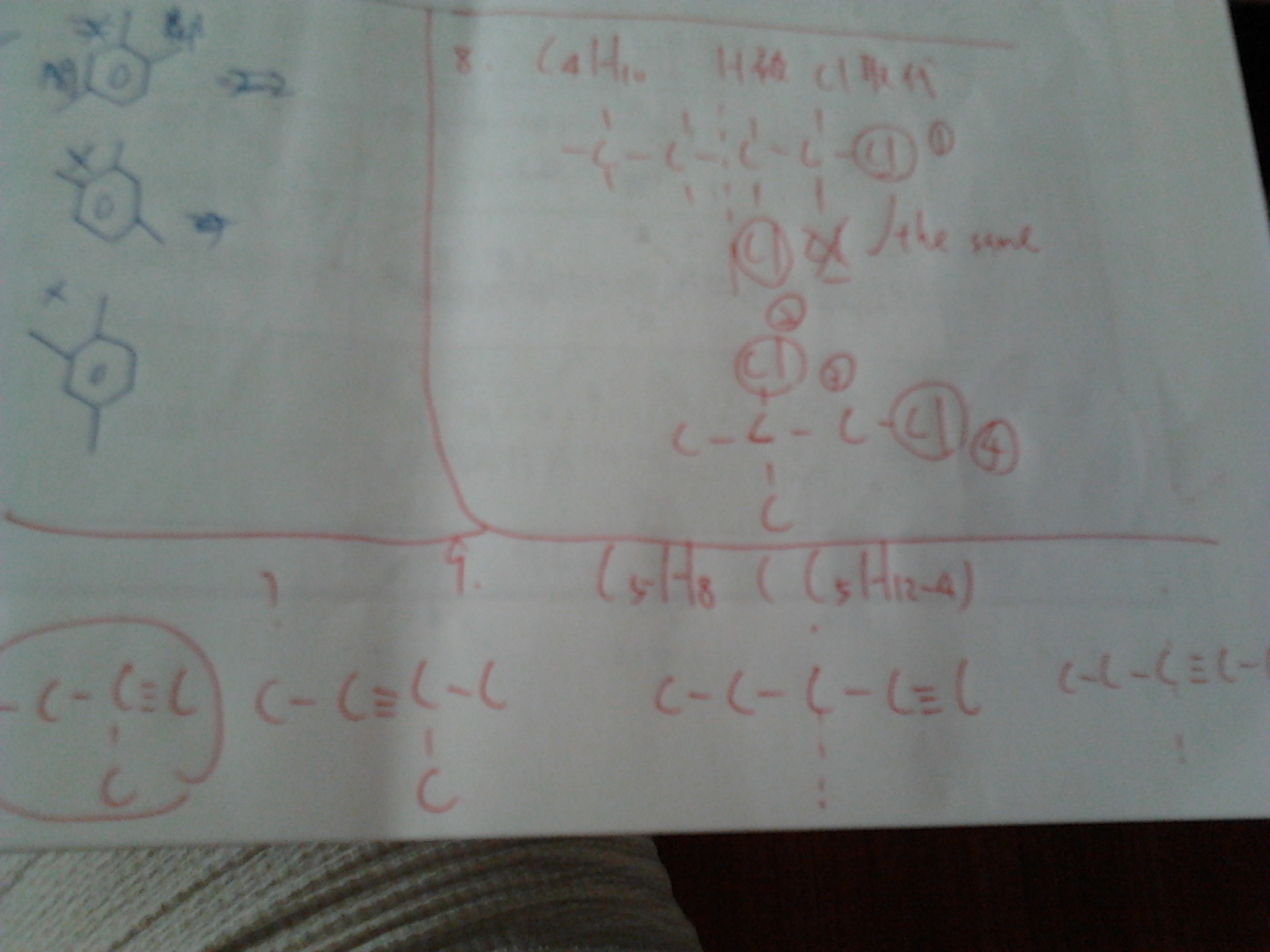 第9題C5H8含三鍵的異構物,請問左下方圈起來的那個不行嗎?有和哪個重複到嗎?