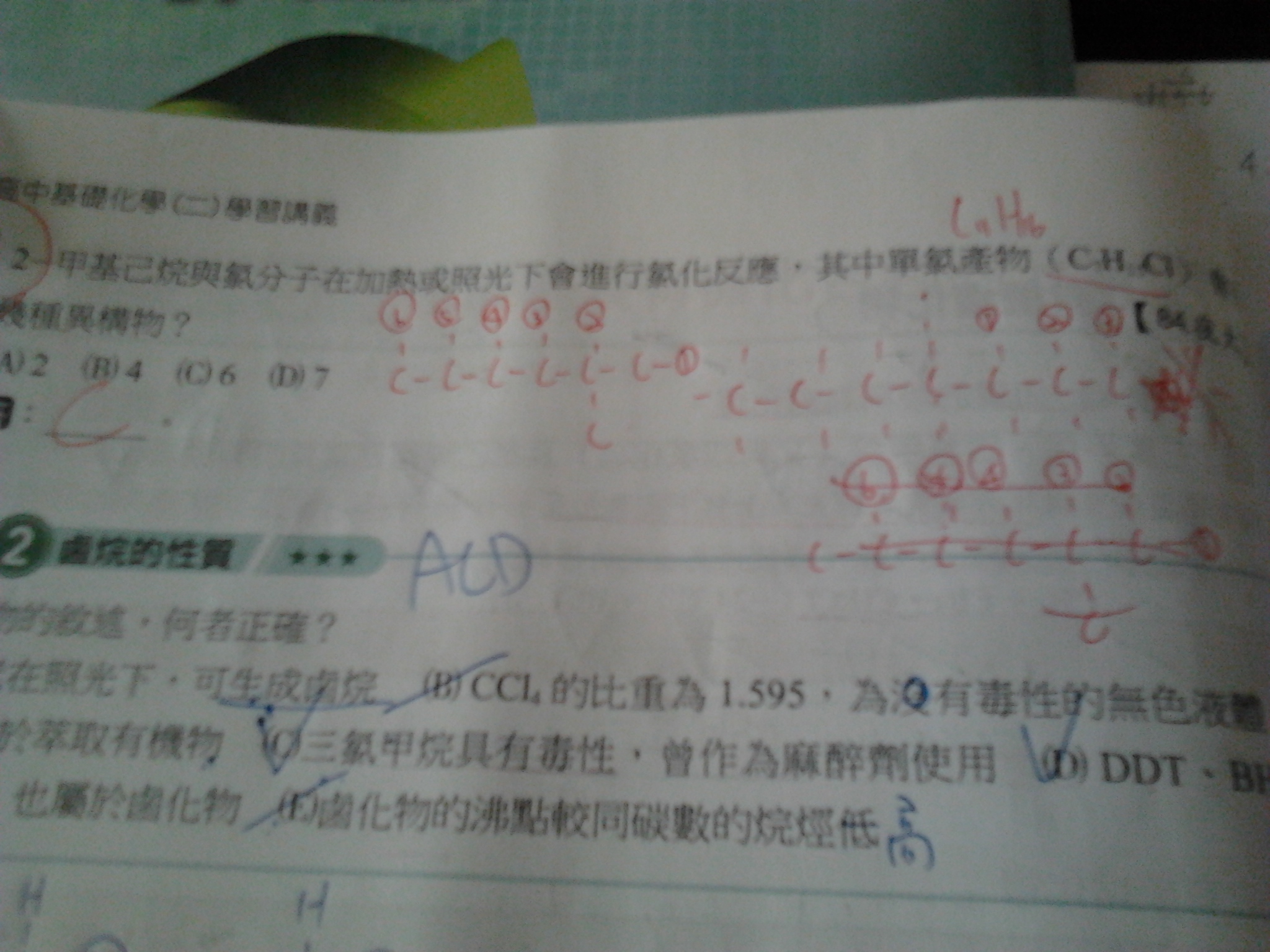 請問C7H15CL的異構物要怎麼畫?要先從C數為7的宛類開始嗎?