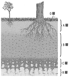 ( 選B )1.圖為土壤剖面圖,O、A、B、C代表剖面中的各層,哪一層因有明顯的澱積現象,土壤質地較細,沃度較高? (A)A (B)B (C)C (D)O