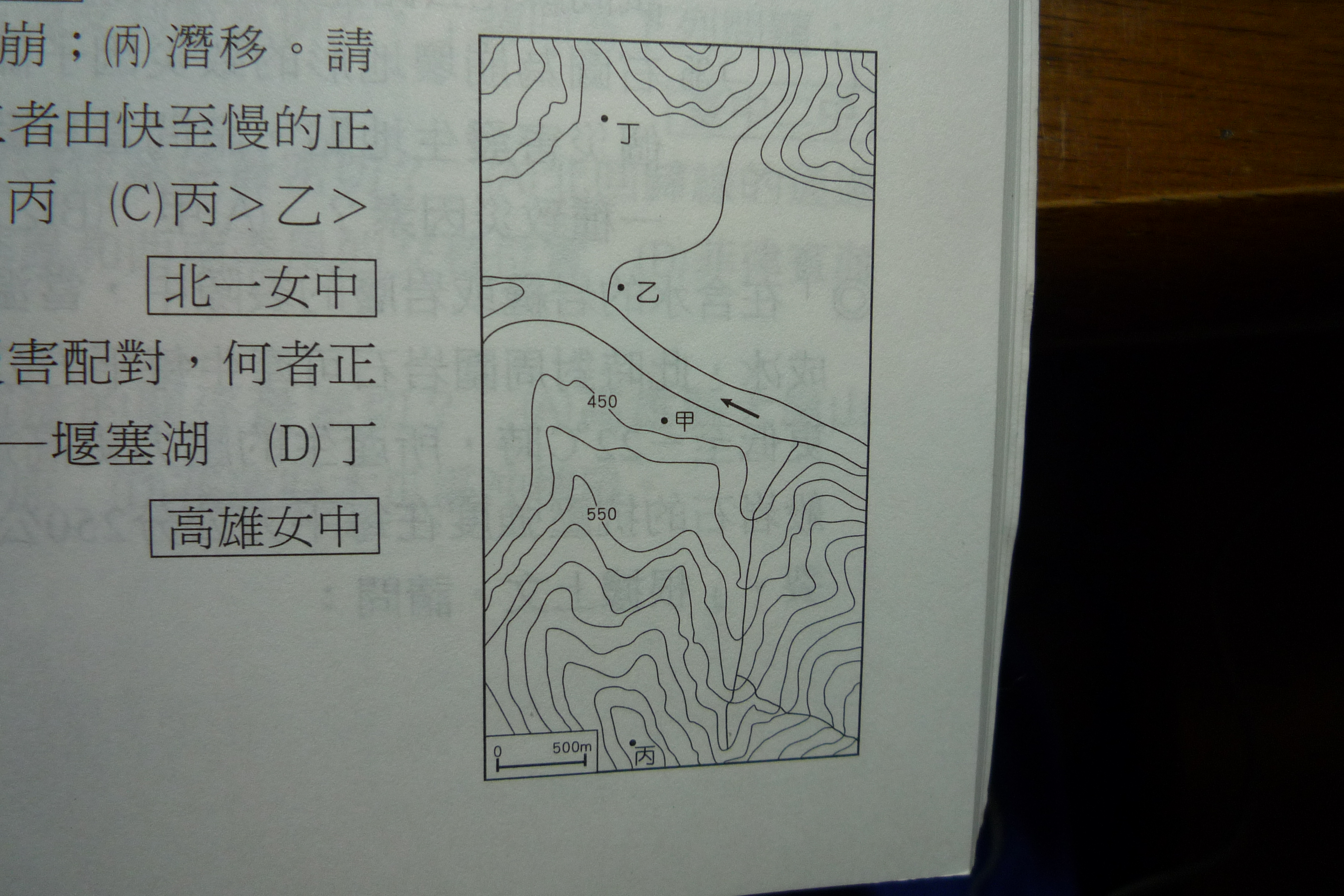 甲到丁所發生的地形災害配對,何者正確?(A)甲─土石流(B)乙─洪患(C)丙─衍塞湖(D)丁─地滑。 為甚麼A不行,在河川下游沖積扇地區不是容易有土石流嗎