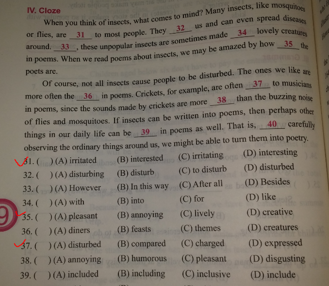 31.答案是C,為何不能選B,用過去分詞當形容詞用.被人腦努的