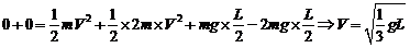 ( D )3.長度L的輕棒兩端分別固定質量2m和m的球一顆,如圖所示,忽略空氣阻力,棒由水平狀態靜止釋放;並繞O點旋轉,則當棒呈鉛直瞬間,兩小球速率(V2m,Vm)為