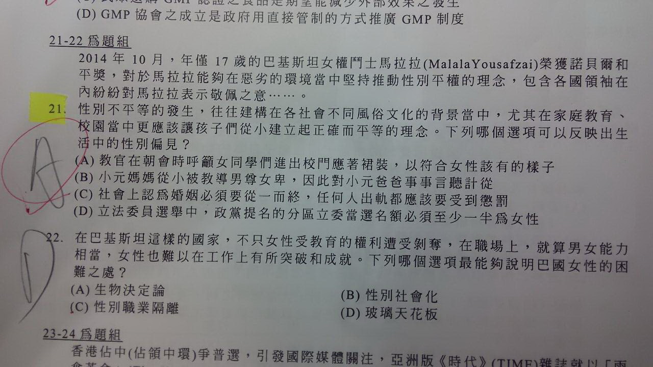 性別偏見 根據課本定義是 性別刻板印象 + 負面看法