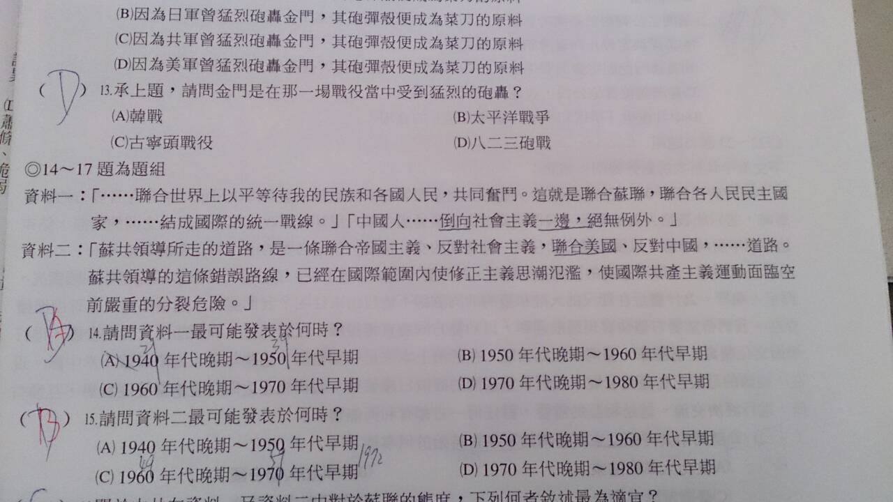 14題A那時候不是還在國共內戰嗎??