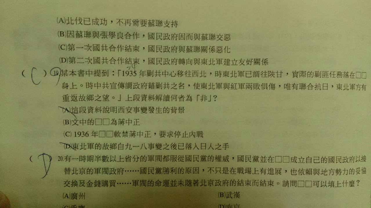 19題的空格是張學良吧?