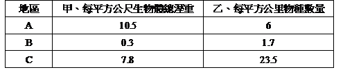 ( A有選 )10.下表A、B、C分別代表三種海岸地區,在甲、乙兩種數據上的差異: