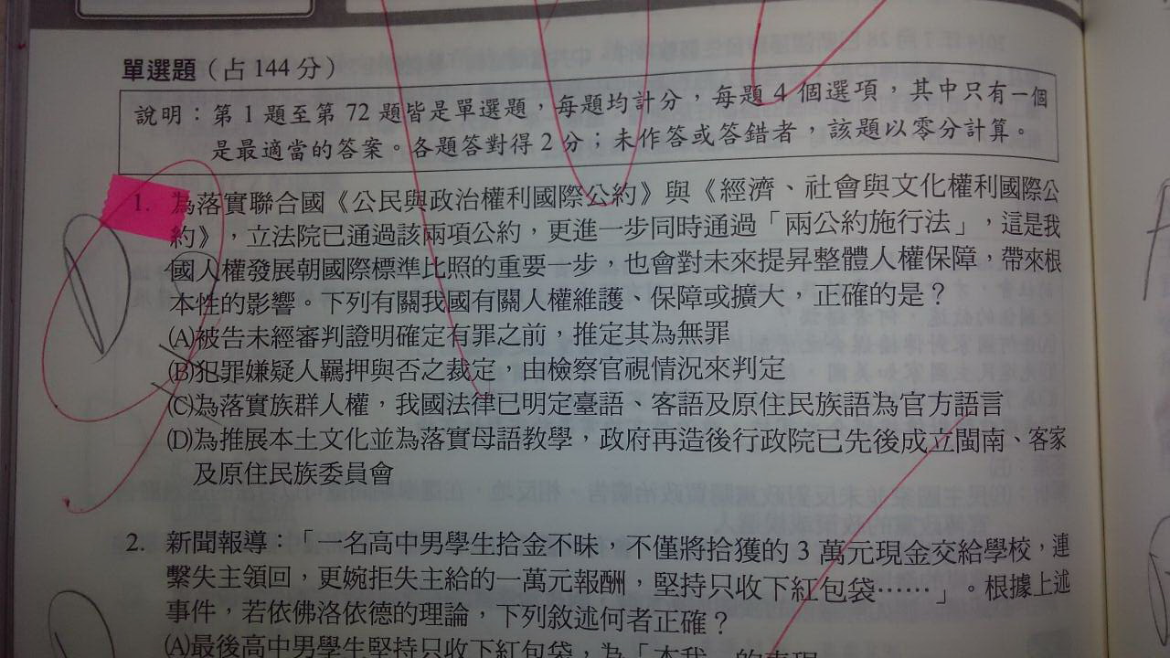 (2) 答案A 指 無罪推定原則 不是來就有了嗎?? 跟題目兩公約有什麼關係??