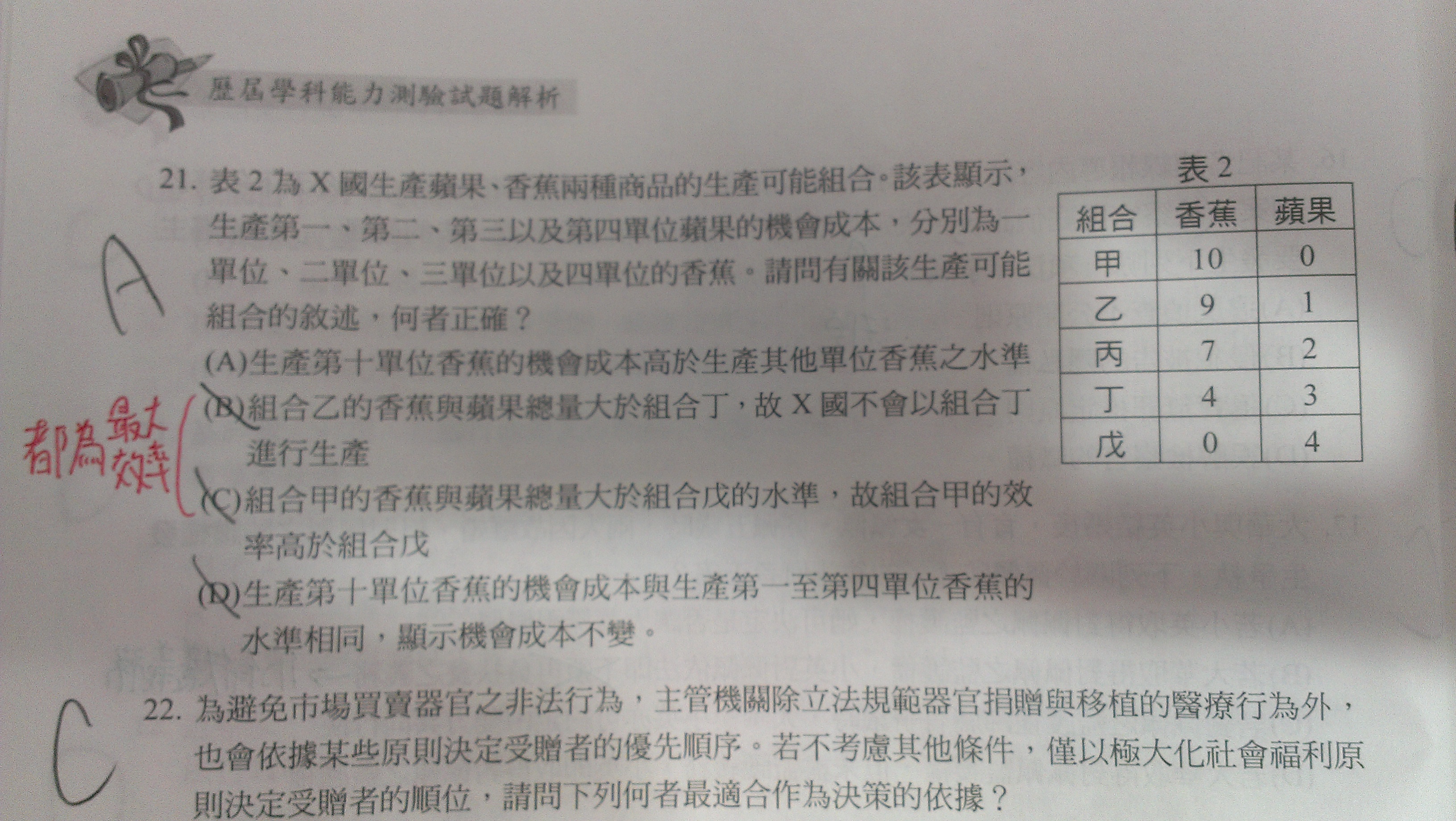 (D)選項機會成本昰遞增還是遞減?
