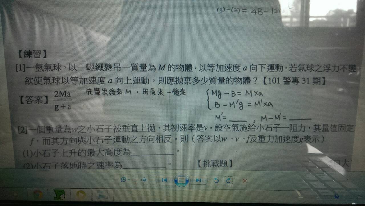 要問練習一,如果可以的話請用上面的聯立方程式算(順便說明兩組聯立方程式的意思),主要求 M' 及 M-M'