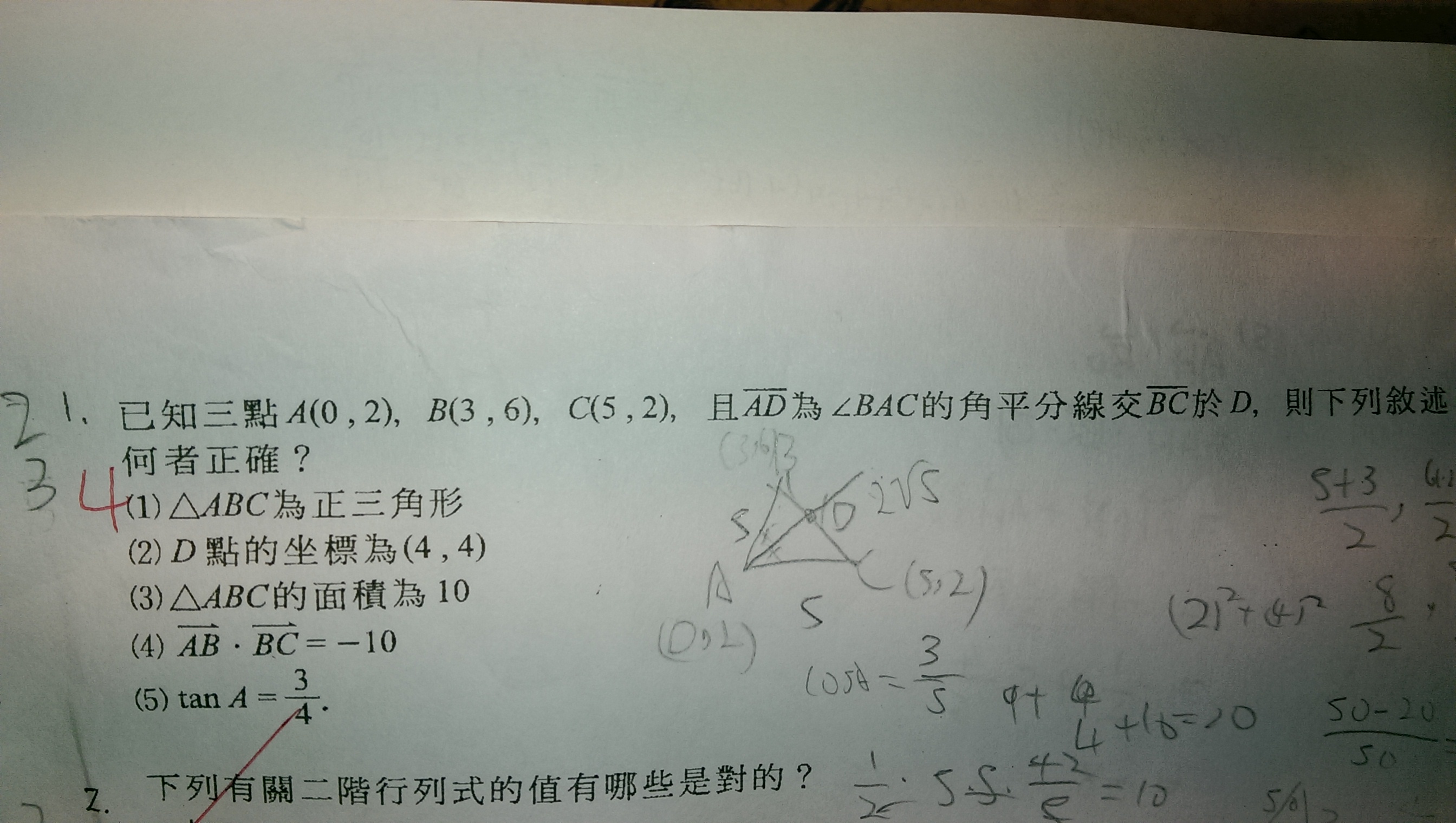 第一題的(4)選項 我怎麼算都是10欸?