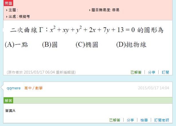 每次發問解題以一題為限,請標示解題題號,若無標示則以畫面第一題為準,若有多題題目發問,請另行發問。