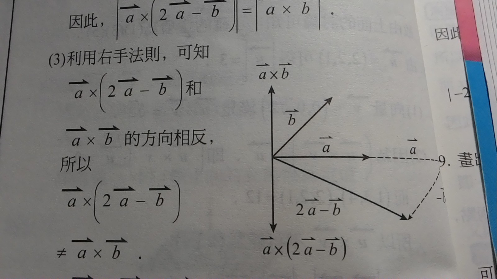 為什麼aX(2a-b)方向是向下?aXb是向上?右手法則?