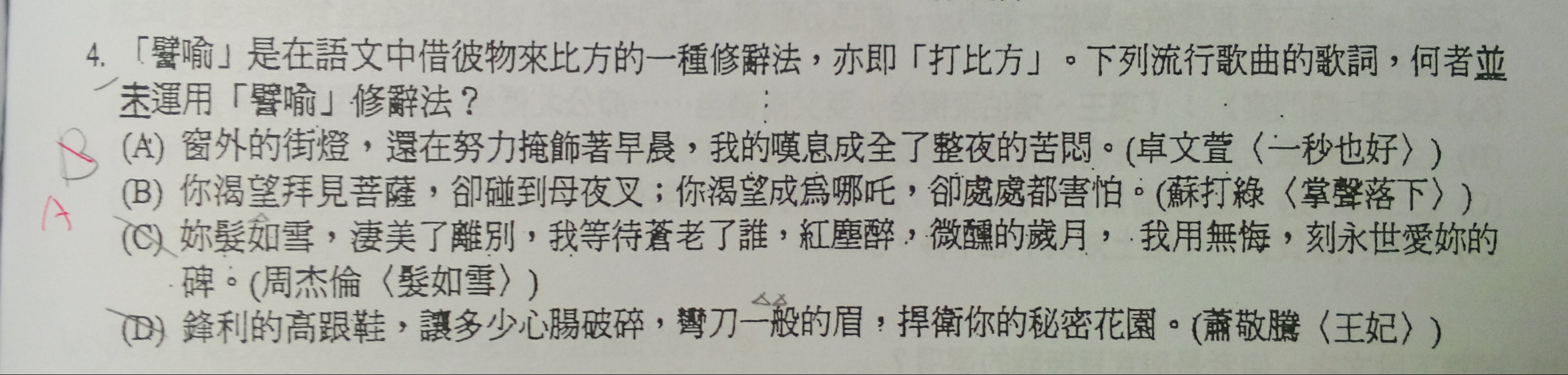 請問(A)&(B)怎麼判斷,借喻OR略喻?