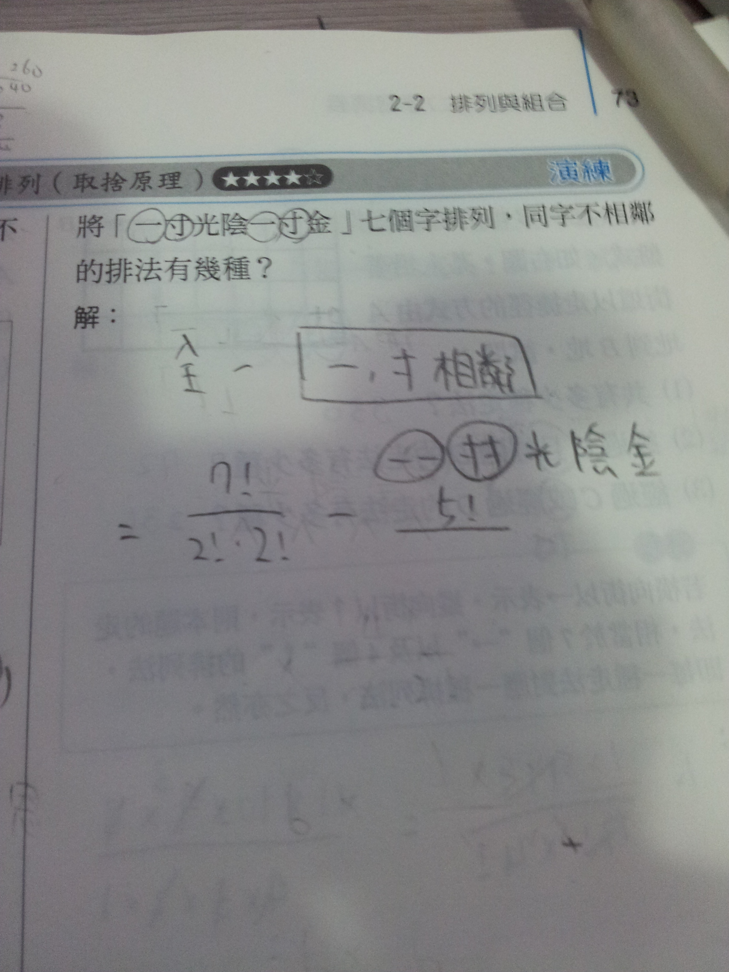 解析7!/2!2!-2*6!/2!+5! <--7!/2!2!以後就不懂