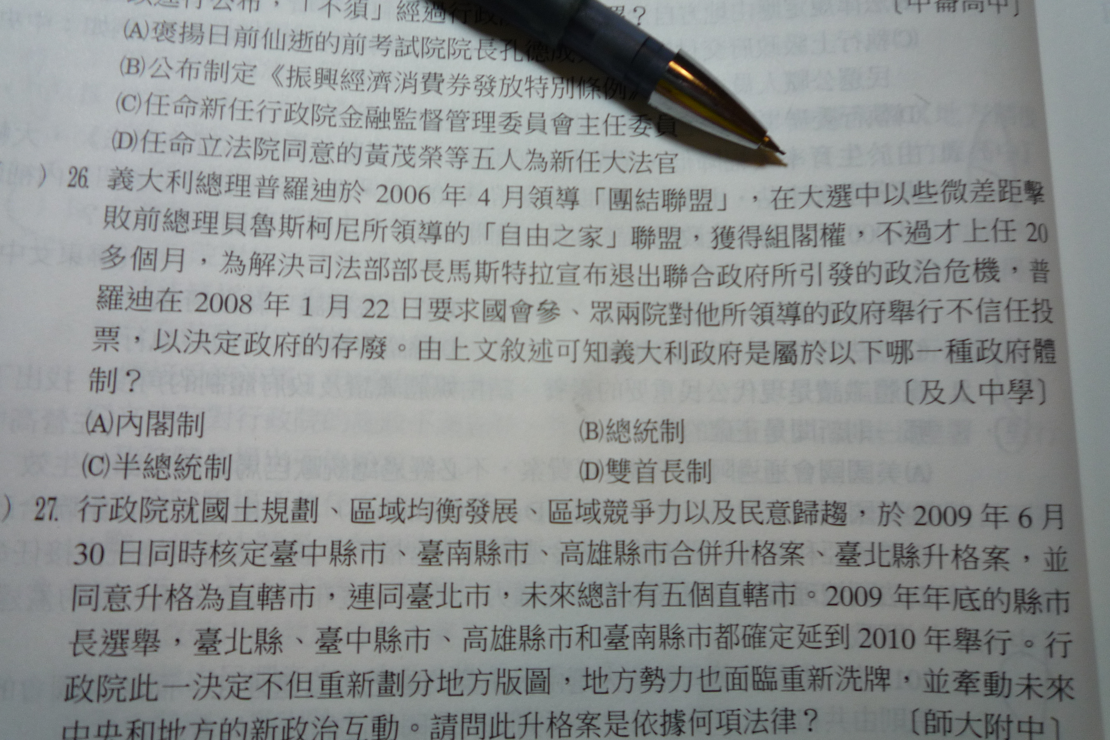 請問地26題為甚麼是內閣制?