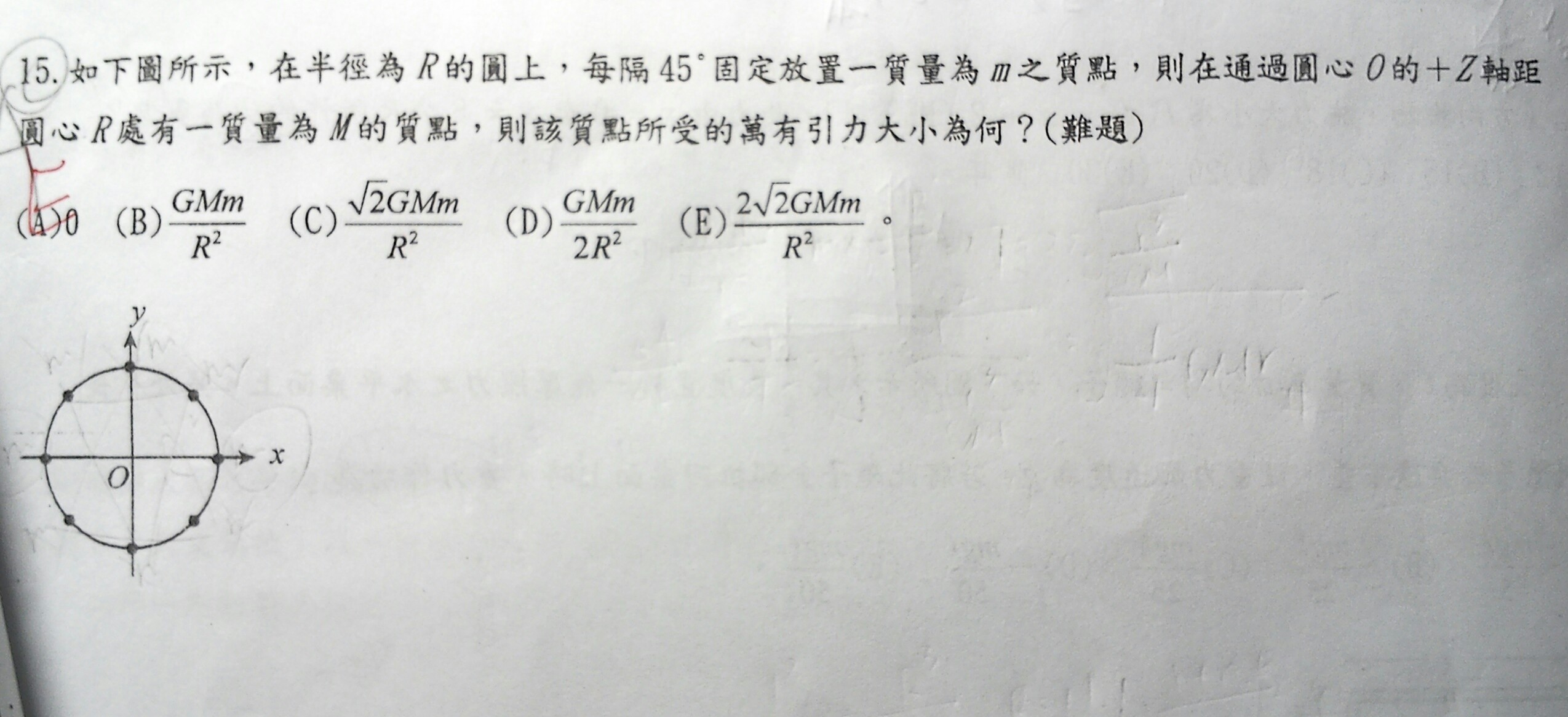 這題想問問我應該如何找出各點之間的關聯,例如某三個質點因為各質點之間相差120度合力為零,所以中心質點感受到引力之合力等於零等關係?