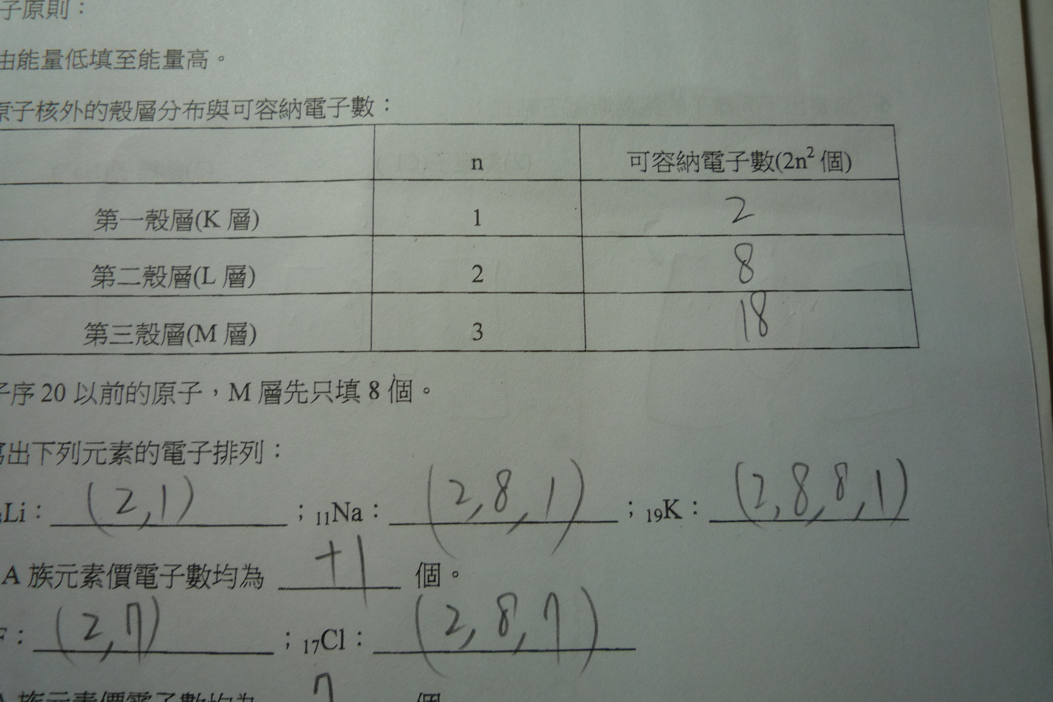 請問上面第三殼層最多可容納18個電子,那為甚麼K第三層卻只能填8個?